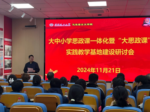 2024年11月21日上午,大中小学思政课一体化暨“大思政课”实践教学基地建设研讨会在我院15楼思想政治教育教学虚拟仿真实验室举行,会议由我院副院长王军主持,来自武汉大学中南医院、武汉交通职业学院、武汉华夏理工学院、湖北幼儿师范高等专科学校、武汉市仪表电子学校的师生40余人参加会议。