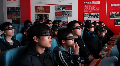 接着,在场师生体验思想政治教育虚拟仿真教学,回顾了中国共产党成立之后的革命奋斗经历以及党的十八大以来取得的成果,一起佩带实验室的3D眼镜沉浸式体验参观“南湖嘉兴”“人民纪念碑”等多个场景,还利用实验室里的VR设备沉浸式体验了“狼牙山五壮士”“平型关大捷”等重要革命场景。