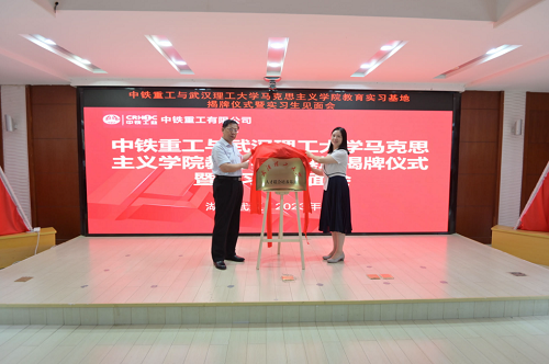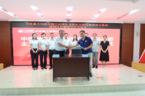 2023年9月12日下午,中铁重工有限公司与武汉理工大学马克思主义学院教育实习基地揭牌仪式暨实习生见面会在中铁重工有限公司举行。公司党委书记、执行董事李书学,公司党委副书记、纪委书记、工会主席李世敏及实习生接收部门负责人或联络人,武汉理工大学马克思主义学院副院长雷江梅,政治教育系主任刘骏,政治教育系支部书记陈鹏,教学办主任周天华,政治教育系老师罗干,以及即将进入实习阶段的武汉理工大学马克思主义学院的本科生参加了上述活动。