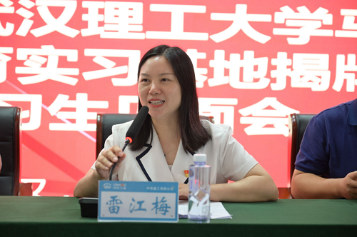 随后,雷江梅副院长介绍了我院思想政治教育本科专业的发展历史、取得成绩与专业特色,并语重心长地嘱托参加实习的同学要着重打好基础,为社会做出更大贡献。她表示学院和企业将依托新的人才联合培养基地共同为人才培养积极出力,并再次感谢中铁重工领导和相关部门为我院思想政治专业发展和人才培养的大力支持。