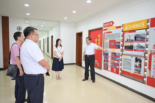 会议结束后,李书学书记邀请武汉理工大学马克思主义学院的与会人员前往中铁重工的党建文化区,向大家介绍了中铁重工关于“三峰党建”和“六廉文化”等公司特色的党建内容。