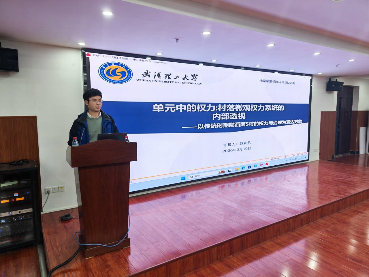 赵双龙老师以“单元中的权力:村落微观权力系统的内部透视——以传统时期陇西南S村的权力与治理为表达对象”为题,首先从研究背景和问题意识切入,向同学们系统阐释了选取传统时期陇西南S村作为个案的学术缘起,深入剖析村落微观权力系统的核心关切。随后,他通过对相关领域文献综述的梳理,厘清了既有研究的脉络与不足,细致还原了S村内部权力运行的逻辑机制与治理实态。最后,赵老师基于详实的案例分析得出了研究结论,深刻揭示了传统村落单元中权力结构的独特形态及其对理解中国基层社会治理历史经验的重要启示。