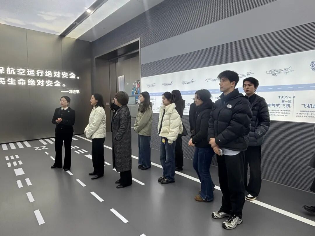 在签约仪式前,马克思主义学院校友、湖北机场集团实业公司党委副书记、总经理陈敏灿带领师生们进入到湖北机场集团展示中心讲授了一节生动的“思政课”,通过陈敏灿校友的生动讲述,师生们详细了解了湖北机场集团与国家民航事业同频共振的发展历程、蓬勃兴旺的发展现状和围绕国家战略和湖北高质量发展超前布局的规划和愿景,深刻感受到了湖北机场集团的优秀民航文化,并在湖北机场集团贡献湖北支点建设重大作为的使命担当中备受鼓舞。