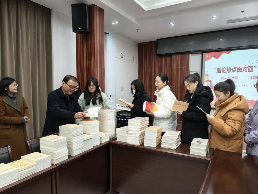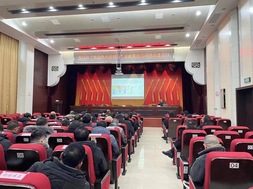 在天门市侯口街道办事处,武汉理工大学党委宣传部常务副部长王能东、党委宣传部副部长谭立满就进一步加强“理论热点面对面”实践基地进行了调研座谈,听取天门市委宣传部、侯口街道办事处相关负责人、部分乡镇宣传委员的意见建议,并开展送图书活动。武汉理工大学马克思主义学院教授、副院长权宗田以“学习贯彻习近平文化思想,建设社会主义文化强国”为主题,结合国情、省情、市情,从“习近平文化思想的形成、习近平文化思想的主要内容、习近平文化思想的理论贡献、习近平文化思想的重大意义、习近平文化思想的实践要求”等五个方面对习近平文化思想作了系统深入的阐述。