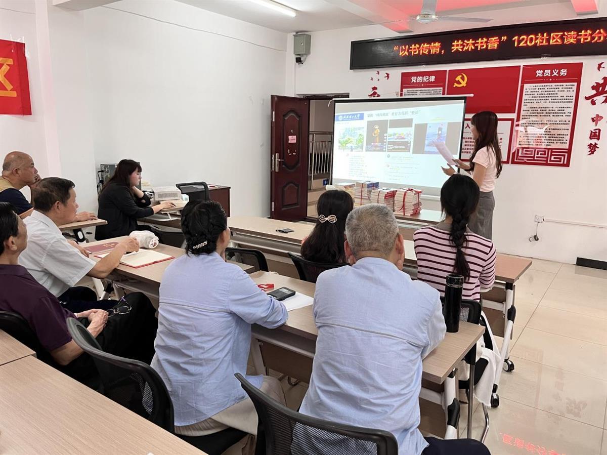 在117社区,付文佳、李怡晓、张新雨、曹金睿4位同学分享了他们近期正在读的《毛泽东选集》《单向度的人》《橘子不是唯一的水果》与《长安的荔枝》,并制作了简单易懂的幻灯片,深入浅出地为居民介绍了书中讲述的内容。武汉理工大学马克思主义学院副教授王军向居民们阐述了阅读的重要性,鼓励大家每天固定时间进行阅读,将阅读作为一种生活方式长期坚持下去,并建议大家读完一本书后,写下自己的读后感,或者与他人分享阅读心得。现场的居民们纷纷表示受益匪浅。