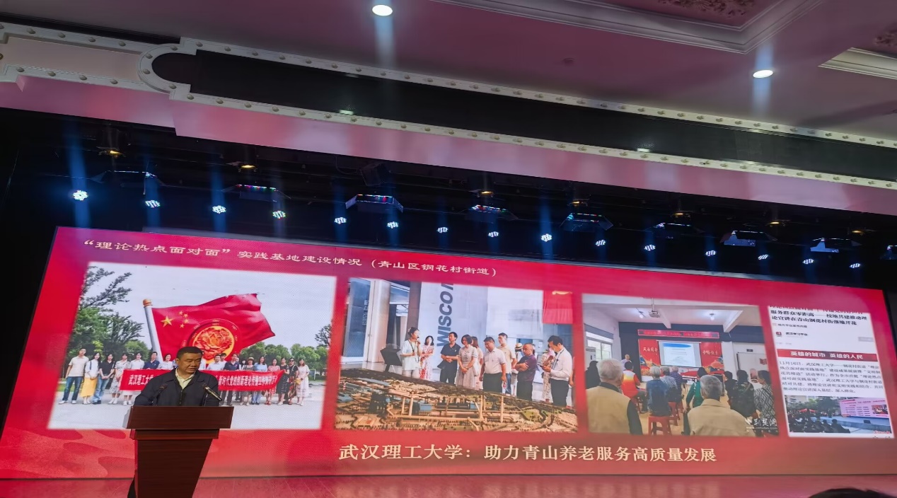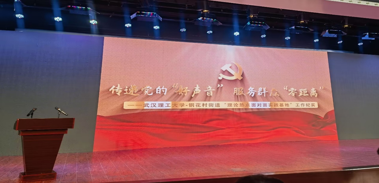 会议现场同时播放了武汉理工大学—钢花村街道“理论热点面对面”实践基地2023年建设情况纪实影片《传递党的“好声音” 服务群众“零距离”》。