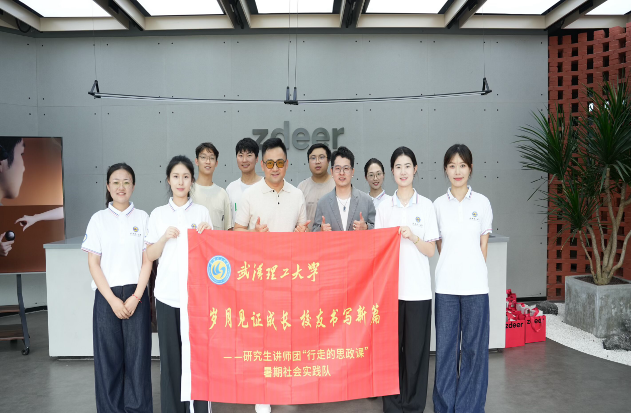 为感悟新时代伟大变革,强化研究生思政引领,深入挖掘校友精神,发挥校友育人作用,激励青年学子感悟新时代生动实践和伟大成就,在实践育人大课堂中厚植家国情怀、扬帆理想志向。武汉理工大学研究生讲师团开展2025年“岁月见证成长,校友书写新篇——‘行走的思政课’”暑期社会实践活动。7月7日,实践队一行9人走进左点科技有限公司武汉总部,与公司创始人朱江涛、邹加兵两位优秀校友进行了深入对话。
