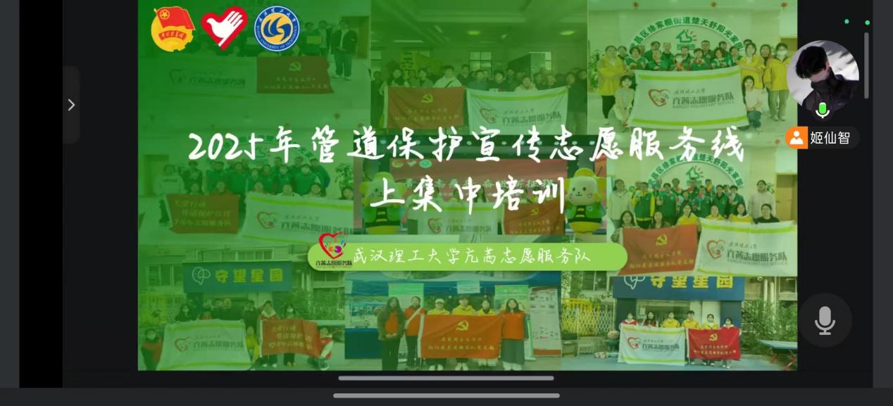 亢茜志愿服务队为积极响应共青团中央管道保护宣传主题活动号召,进一步提升志愿者综合服务能力,于12月21日15:00通过线上会议组织全体队员开展线上集中培训。队员们集中观看学习团中央发布的管道保护专题培训视频,系统完成志愿者沟通技巧、项目管理等系列课程学习,圆满达成培训目标。