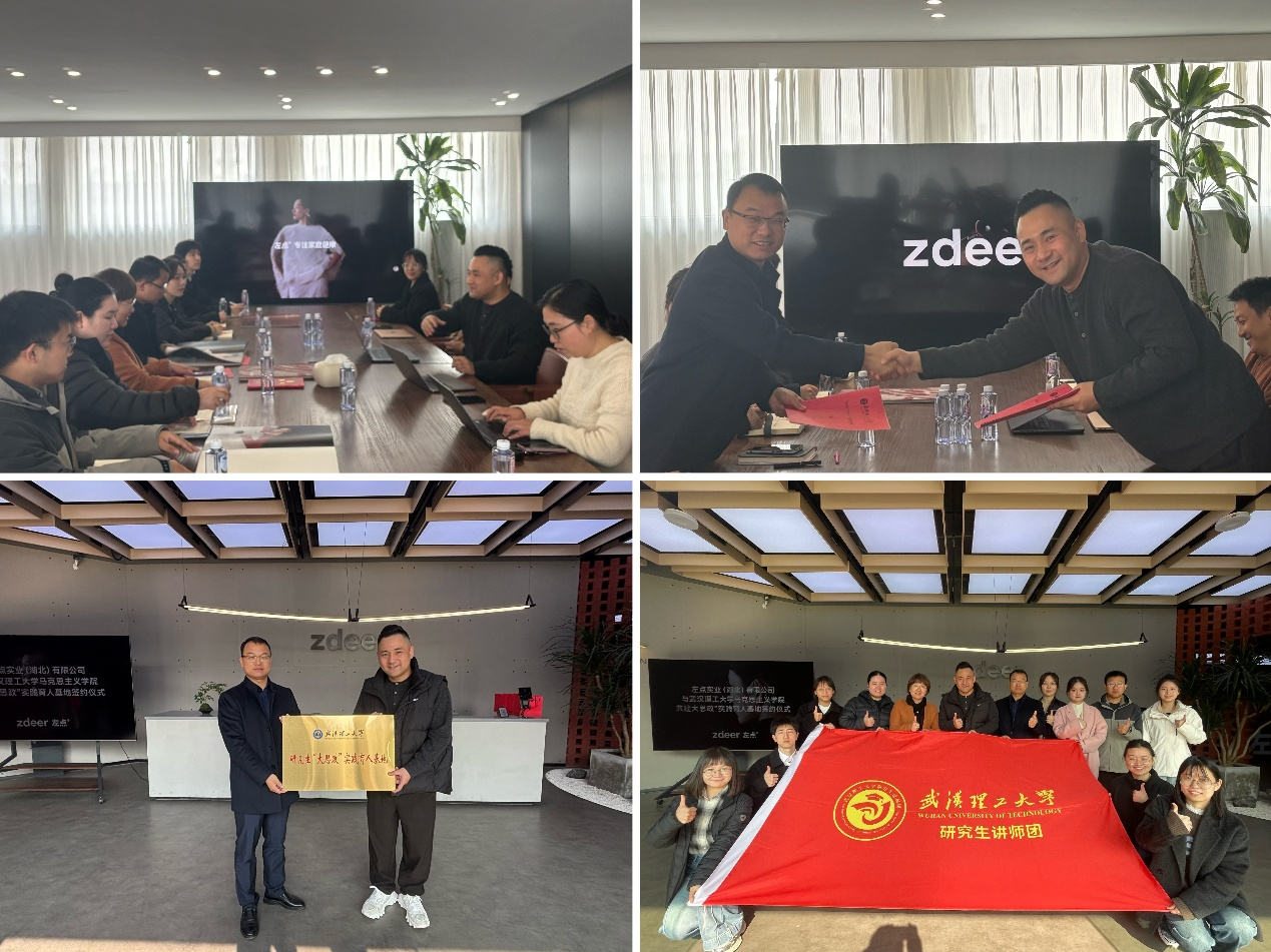 为深化产教融合,促进人才共育,12月9日上午,武汉理工大学马克思主义学院赴武汉左点实业(湖北)有限公司(以下简称“左点实业”)共建“大思政”实践育人基地。我校党委研究生工作部副部长田仕、马克思主义学院党委副书记黄华莉、学院教师代表、研究生讲师团成员及左点实业企业方代表共同出席活动。