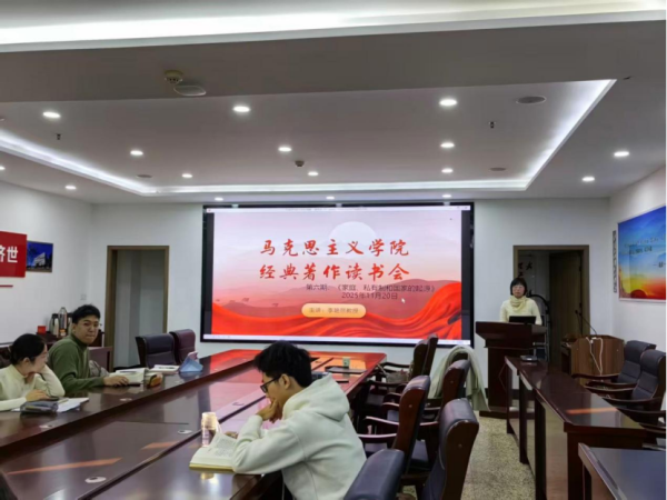 为深化同学们对马克思主义经典著作的理解,提升理论素养,马克思主义学院于11月20日在弘毅楼1207会议室举办“经典著作读书会”系列活动。本期聚焦恩格斯《家庭、私有制和国家的起源》,特邀我院教授李艳丽老师担任主讲,副院长王军教授全程参与交流。