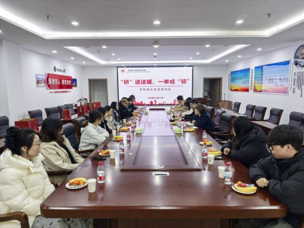 为鼓舞考研学子斗志,缓解备考压力,12月11日上午,马克思主义学院在弘毅楼1207举办2022级思政本科暖冬送考活动。本次活动由学院党委副书记黄华莉主持,学院副院长王军、副院长李凡、辅导员丁涛及2022级考研学生参加。