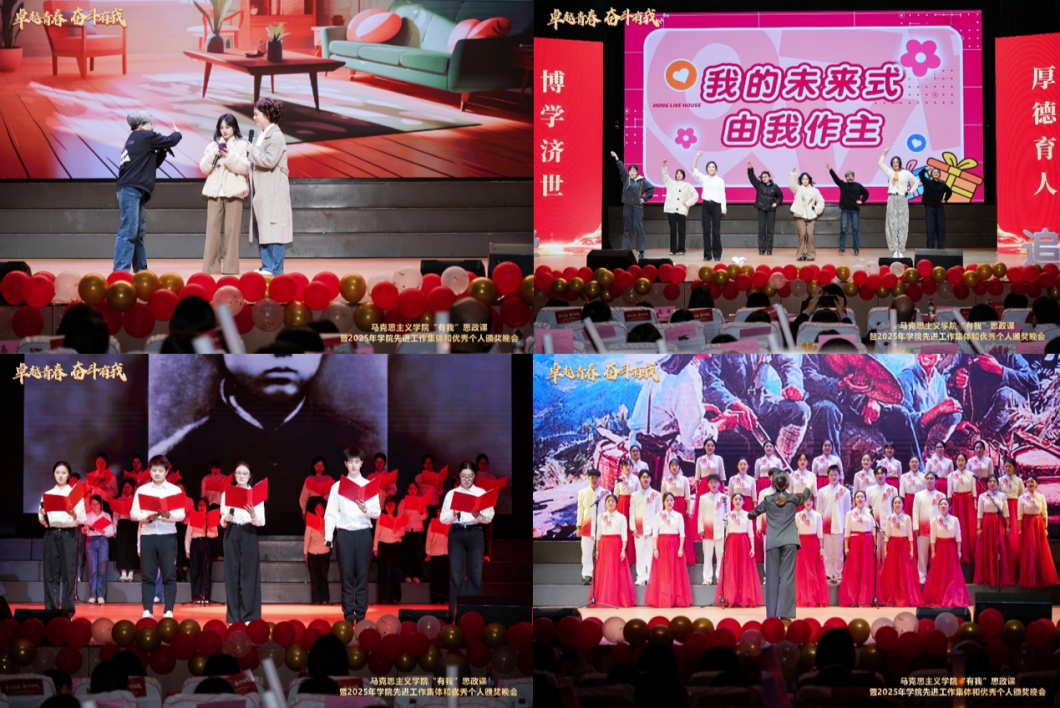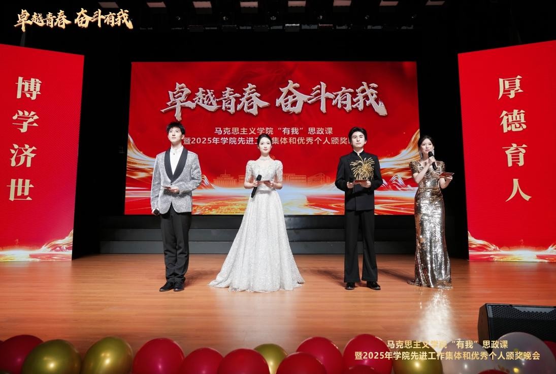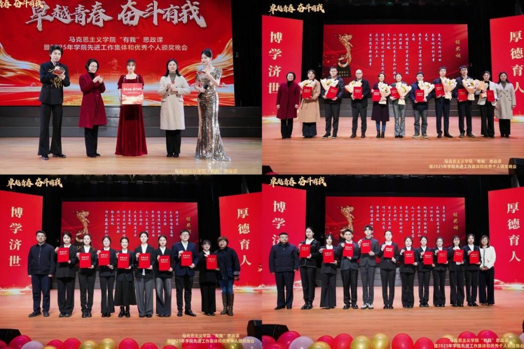 12月18日晚,“卓越青春,奋斗有我”——马克思主义学院“有我”思政课暨2025年学院先进工作集体和优秀个人颁奖晚会在西院大礼堂举行。学院党委书记张秋艳、院长雷江梅、副院长权宗田、王军、李凡,党委副书记黄华莉以及学院机关、各系部教师与全院学生共同参加本次晚会。