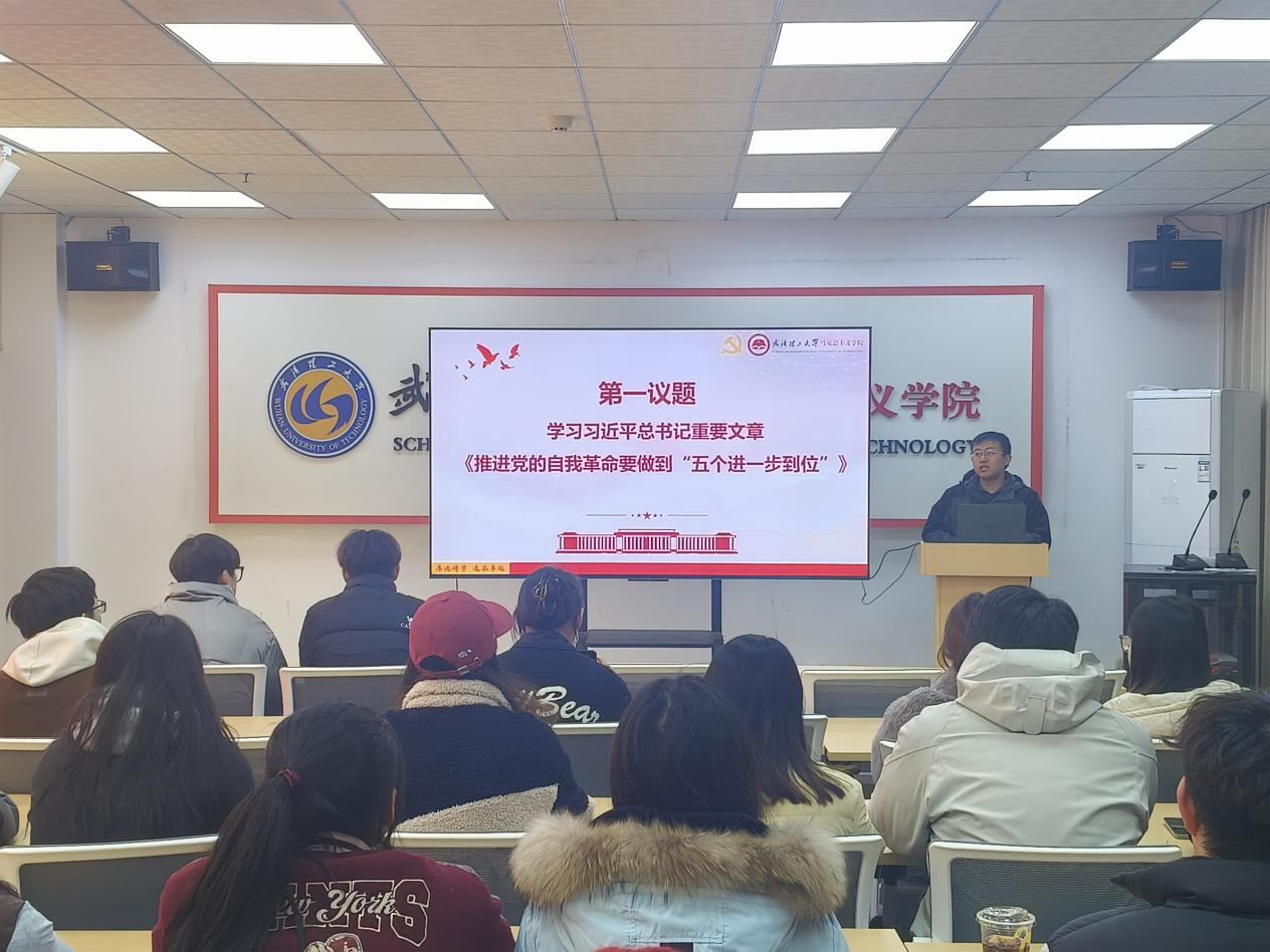 为深入学习贯彻习近平新时代中国特色社会主义思想,巩固拓展主题教育成果,切实提升支部党员的政治素养与责任担当,12月25日晚七点,思政专业本科党支部在弘毅楼715开展12月主题党日活动,支部全体党员参与。