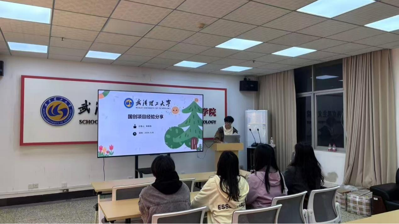 为进一步助力大学生提升科研创新与实践能力,2026年3月26日晚七点,武汉理工大学马克思主义学院团委创新创业部于弘毅楼715教室举办大学生自创国创项目经验分享会。本次活动由学院优秀同学朱昱帆、周紫琪主持,学院部分同学到场参与。