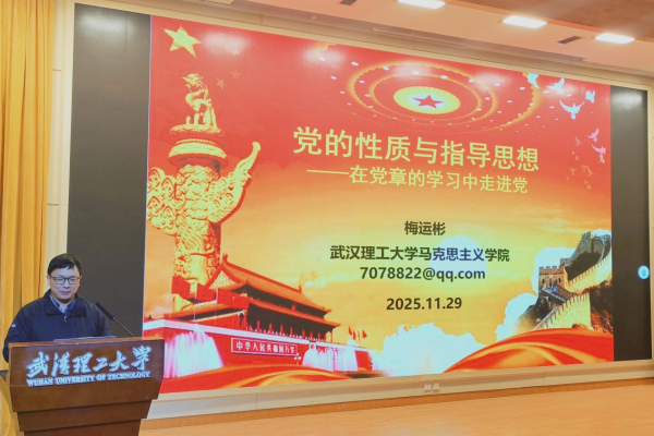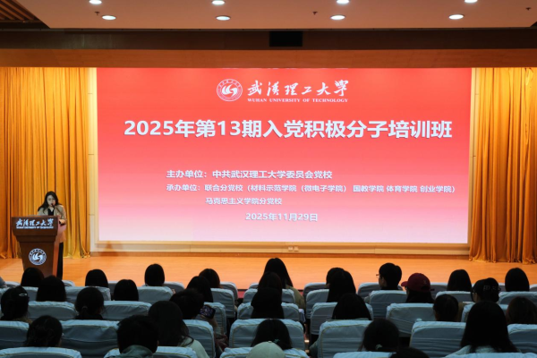 为加强入党积极分子政治理论学习,深化思想认识,引导学员深入学习贯彻习近平新时代中国特色社会主义思想和党的二十大精神,11月29日,中共武汉理工大学委员会党校与马克思主义学院分党校联合组织开展2025年第13期入党积极分子培训班。