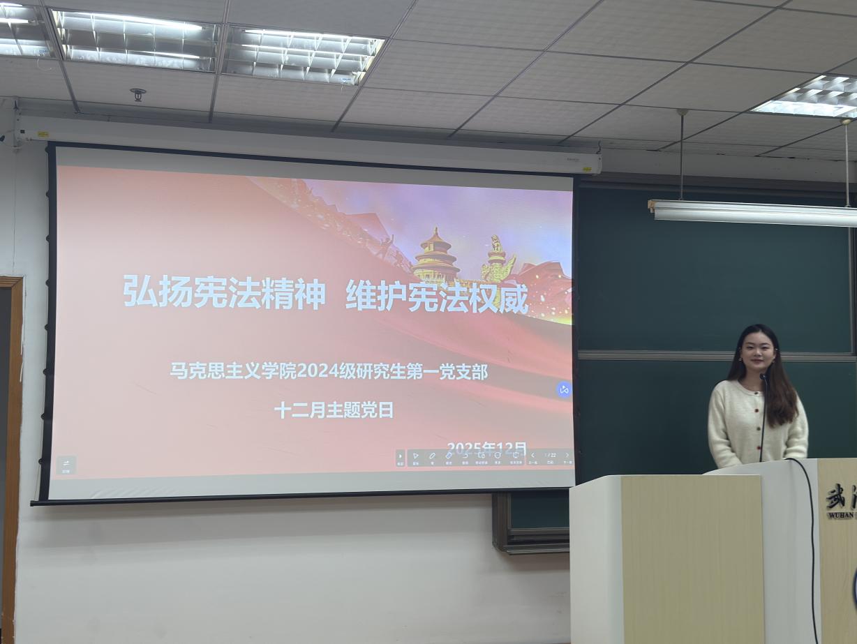 为深入学习贯彻习近平法治思想,筑牢党员法治信仰,凝聚青春奋进力量,12月15日晚上,学院2024级研究生第一党支部于弘毅楼313室开展“弘扬宪法精神