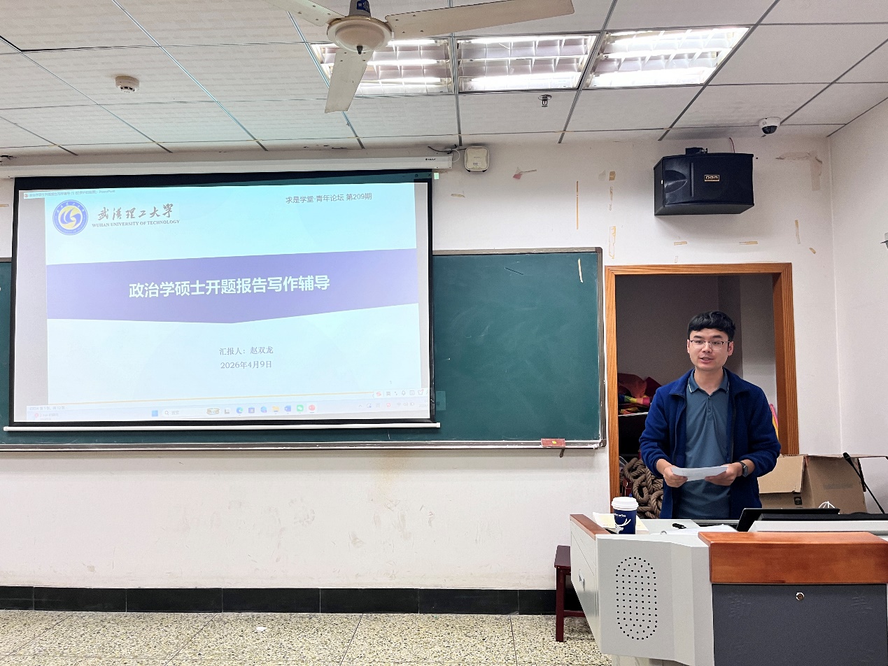 活动伊始,赵双龙博士聚焦政治学学科特点,结合自身科研与指导经验,系统讲解开题报告核心要点。他从研究选题、文献综述、框架搭建、创新提炼等关键模块展开,强调开题要避免选题空泛、逻辑不清、创新不足等常见问题。针对同学们普遍困惑的理论框架设计、研究方法选取等内容,赵双龙博士结合自身博士论文逐一拆解,指导大家找准研究切口、明晰写作思路、规范表达格式,为高质量完成开题报告筑牢基础。