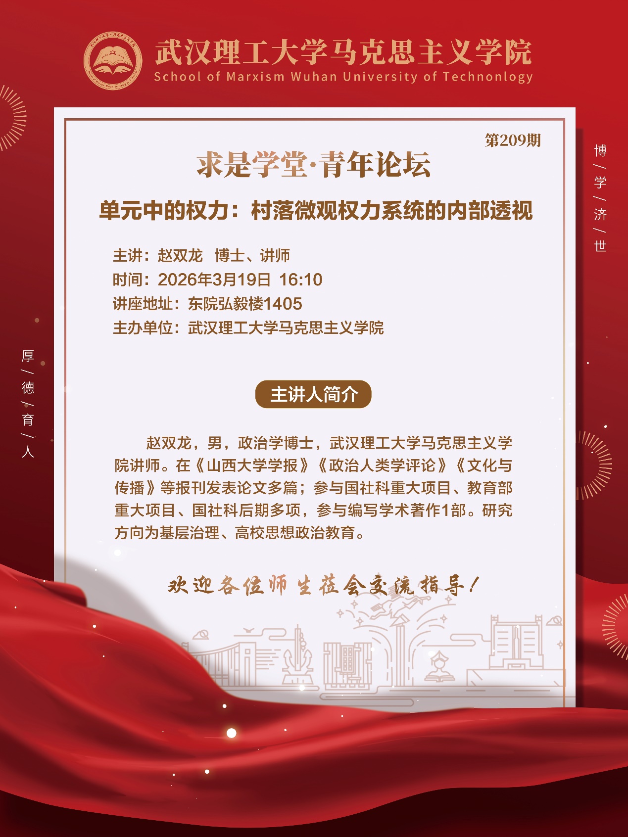 【求是学堂·青年论坛】第209期预告:单元中的权利:村落微观权利系统的内部透视