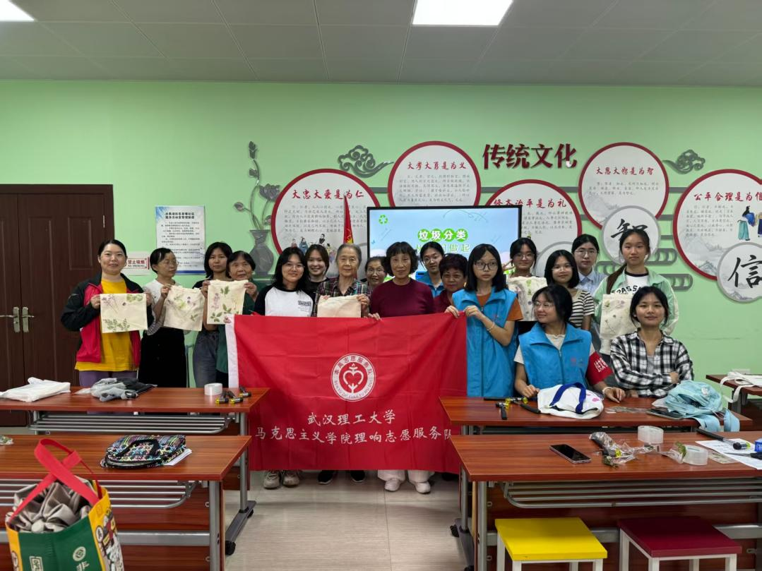为积极推动垃圾分类知识普及,弘扬敬老爱老传统美德,9月18日下午,武汉理工大学理响志愿服务队联合岳家嘴社区居委会,在社区活动中心二楼组织开展了一场以“青年i分类”为主题的“绿韵敲拓,‘袋’爱回家”助老环保活动。志愿者们通过植物拓印手工实践与垃圾分类宣传相结合的方式,与社区长者互动共学,传递绿色生活理念。