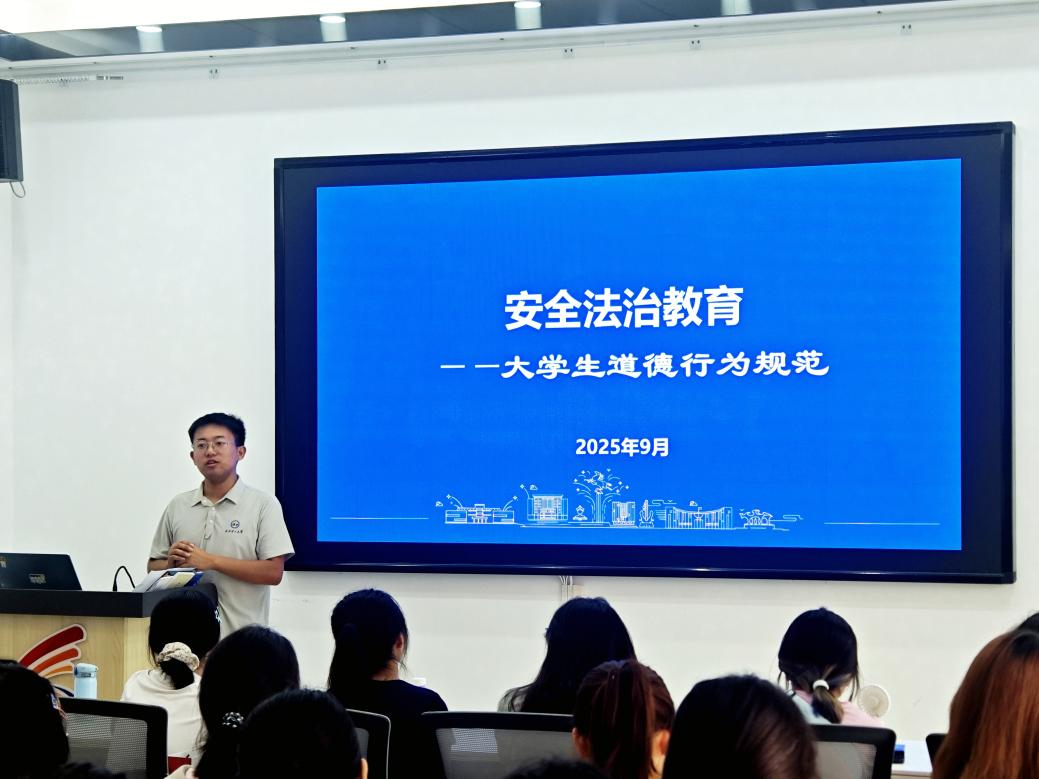 9月6日晚上7点,辅导员丁涛开展了2025级本科生新生第一次年级周会,从安全法治、励行塑品、时代使命等方面向同学们提出殷切嘱托,鼓励学生在保护好自身的安全的前提下,积极探索。强调要遵守校园文化与规章制度、保持积极心态、适应生活转变、善于学习总结。此次入学教育不仅为新生提供了宝贵的指导,也激励他们以积极的心态迎接研究生生活的挑战。