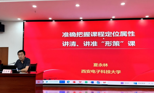 会议特别邀请了西安电子科技大学马克思主义学院夏永林教授进行指导。夏永林教授结合自身教学与研究经验,作了题为《准确把握课程定位属性 讲清、讲准“形策”课》的主旨报告,报告从正确认知“形势与政策”课、讲好“形势与政策”课的维度与难点、讲好“形势与政策”课对教师的要求等三个方面展开。