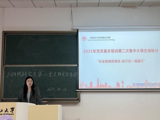 最后,活动进入“研途铸魂担使命,知行合一强国行”交流研讨环节。组织委员曾晓同志紧扣2025年党员基本培训第二次集中大课主题作重点发言,强调青年党员要立足自身学习实际,围绕“深化理论武装”“强化学术研究服务国家需求”“践行强国使命”三个关键点开展深入研讨,形成“以研促学筑牢信念根基,以行践知强化责任担当”的一致意见。