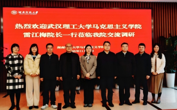 交流中,雷江梅院长对三所高校的热情接待和真诚分享表示衷心感谢。她高度评价了中南大学、湖南大学、湖南师范大学在学科建设、人才培养、科学研究等方面取得的卓越成绩。雷院长指出,此次调研旨在系统学习兄弟院校的先进理念与成功经验,深入探讨发展过程中面临的共性问题与解决路径,为我院相关工作的优化提升提供思路参考。她表示,希望以此次调研为契机,进一步建立常态化交流合作机制,在科研合作、师资互访、学术交流、人才联合培养等方面拓展合作深度,共同推动新时代马克思主义理论研究和教育事业高质量发展。