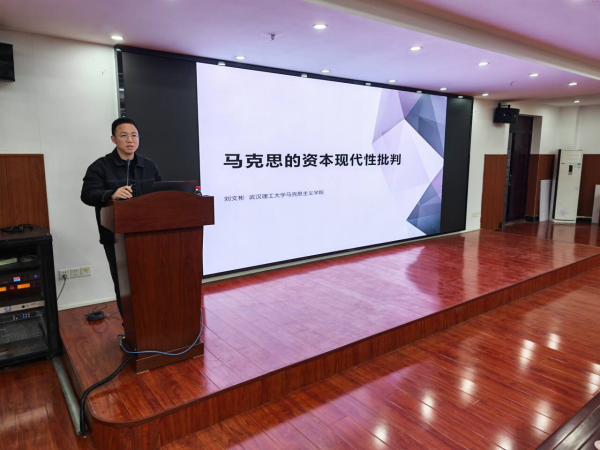 刘文彬老师以“马克思的资本现代性批判”为题开展讲解,从现代性概念及其重要特征切入,向同学们系统阐释了现代性的哲学内涵、历史逻辑及其具体表征。随后他围绕马克思主义理论视野中的资本逻辑与现代性,深入剖析了资本逻辑与现代性之间的内在关联,揭示了资本作为推动现代性发展的核心动力及其所蕴含的矛盾张力。最后,刘老师重点阐述了马克思资本现代性批判的原则与维度,全面解读了马克思资本现代性批判的理论基石、根本立场。